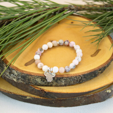Bransoletka dziecięca z opalem różowym i słoniem na szczęście