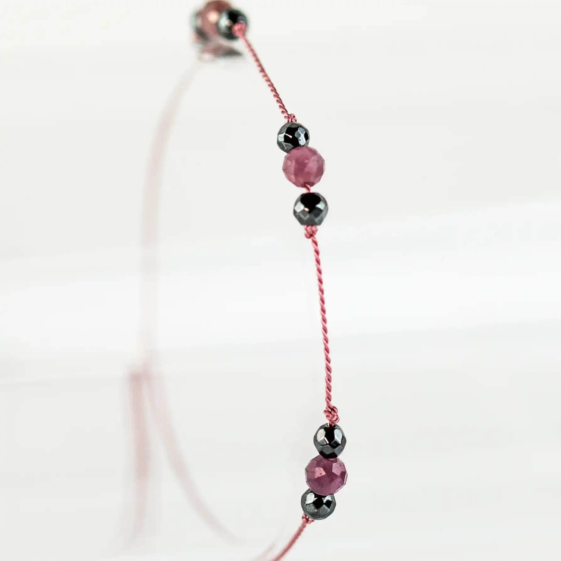 Bransoletki wykonane z jedwabnego sznurka z kamieniami szlachetnymi to dodatek, który pięknie komponuje się z codziennymi i wieczorowymi stylizacjami. Można je nosić samodzielnie, jako subtelny akcent, lub łączyć z innymi dodatkami, takimi jak pierścionek czy delikatny łańcuszek. Kolor kamieni warto dopasować do barw ubrań – intensywny rubin świetnie wygląda przy neutralnych odcieniach. Hematyt doda charakteru i podkreśli elegancki wygląd. Warto zestawiać je ze srebrem lub złotymi dodatkami, które wzmocnią blask kamieni. Bransoletka może być również warstwowa – kilka sznurkowych bransoletek założonych razem wygląda modnie i oryginalnie.