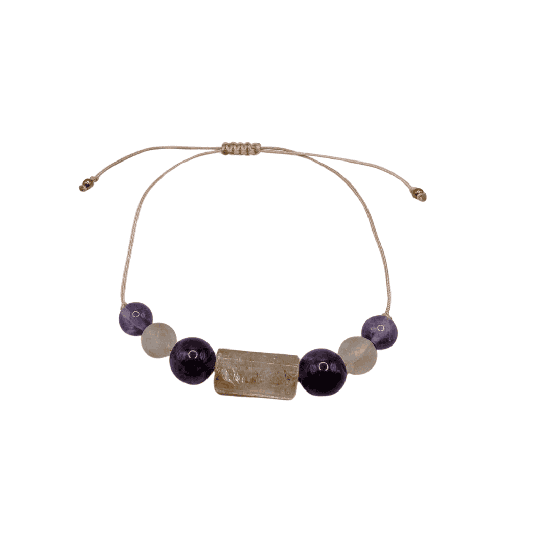 Bransoletka SPOKÓJ z cytrynem i ametystem na sznurku została stworzona po to by zwolnić i odzyskać równowagę. Jej delikatna forma przypomina, że spokój nie oznacza bierności, ale świadomy rytm, w którym możesz naprawdę odpocząć. Niezależnie od tego, czy nosisz ją w pracy, czy w czasie wolnym, pomaga zachować jasność myśli i miękkość reakcji. To dyskretny dodatek, który koi tempo dnia i wspiera w byciu „tu i teraz”.