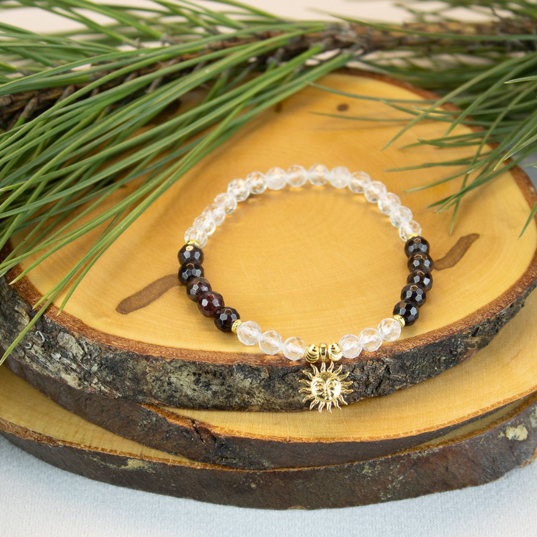 Odpędzanie negatywnych energii — Kamienie naturalne, takie jak granat i topaz, uważane są za silne amulety, które potrafią odpędzić negatywne energie i przyciągnąć pozytywną aurę. Dzięki temu, nosząc naszą bransoletkę, możesz czuć się lepiej psychicznie i emocjonalnie.