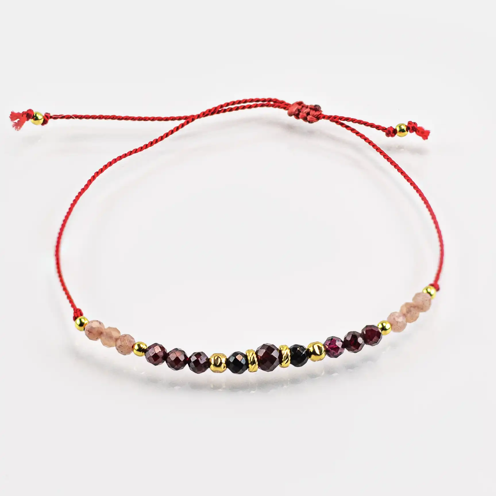 Rubin od wieków uważany jest za talizman odwagi i miłości. Wspiera wewnętrzny spokój, wzmacnia siłę serca i dodaje motywacji w chwilach zwątpienia. Jego energia sprzyja relacjom i czułości, a według dawnych wierzeń chronił przed złymi myślami. Granat natomiast znany jest jako kamień pasji i energii. Pomaga utrzymać harmonię w związkach, dodaje radości i umacnia poczucie własnej wartości. W starożytności noszono go jako talizman na szczęście i siłę w trudnych czasach. Kamień słoneczny to symbol optymizmu i lekkości ducha. Uważa się, że rozświetla myśli, dodaje odwagi i mądrości, a także pomaga osiągnąć spokój wewnętrzny. Łącząc te kamienie, bransoletka staje się prawdziwym energetycznym wsparciem na co dzień.