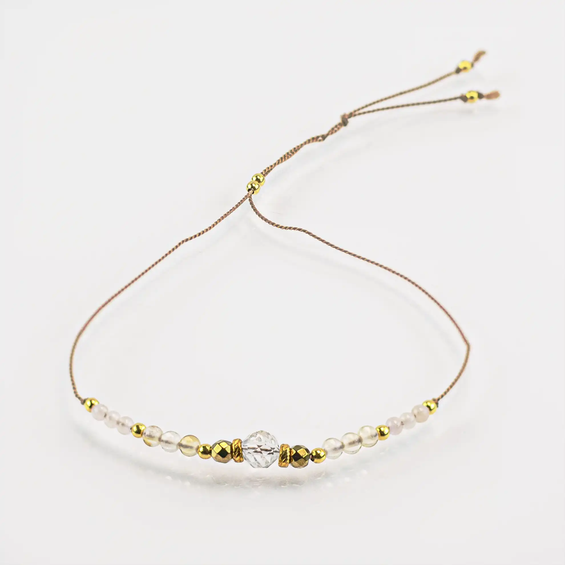 Topaz od wieków ceniony jest jako kamień spokoju i prawdy. Pomaga oczyścić myśli, sprzyja harmonii w relacjach i wspiera wewnętrzną równowagę. Dwniej uznawany był za ochronny talizman podróżników. Cytryn z kolei symbolizuje optymizm i bogactwo. Wierzy się, że przyciąga sukcesy i chroni przed negatywnymi emocjami. W medycynie naturalnej kamień ten stosowany jest dla poprawy samopoczucia i pobudzenia energii życiowej. Bransoletka z cytrynem i topazem to połączenie, które wnosi światło i pozytywne wibracje do codzienności. Minerały w delikatnej oprawie na jedwabnym sznurku podkreślą Twój indywidualny styl.