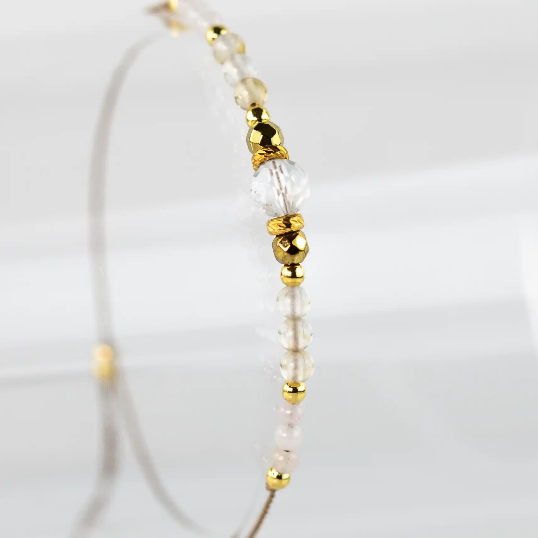 Bransoletka pięknie prezentuje się solo, jako subtelny detal na nadgarstku, ale równie dobrze wygląda w duecie z kolczykami lub delikatnym pierścionkiem. Kolor kamieni warto dopasować do ciepłych barw garderoby, a złoto dodatkowo podkreśli blask cytrynu i topazu. Srebrna bransoletka z podobnym wzorem może stanowić ciekawy kontrast. Bransoletkę możesz zestawić z innymi ozdobami z kamieni szlachetnych, aby stworzyć wyjątkowy komplet.